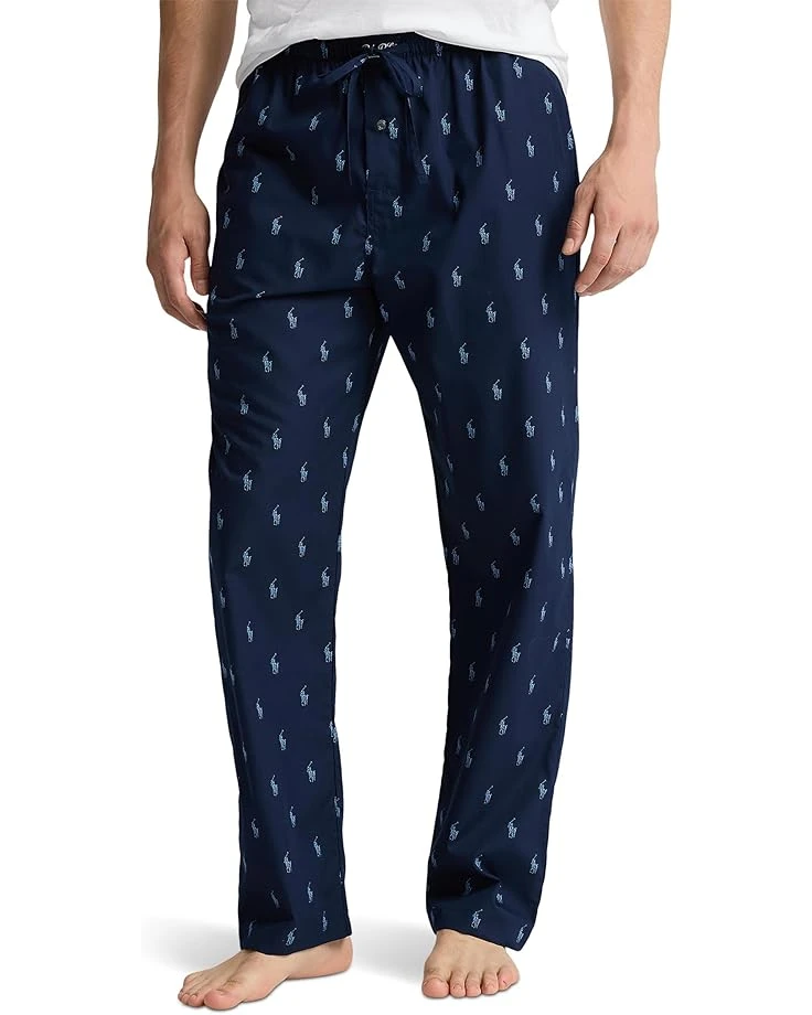 - Featuring signature logo print allover, the Polo Ralph Lauren® AOPP Woven PJ Pants are the perfect choice for lounging at home or getting ready for sleep. These pajama pants are designed with an elasticized waistband with a drawcord for easy pull-on and off. Made from cotton fabric that offers superior comfort and breathability, these printed pants are ideal for your everyday wear.