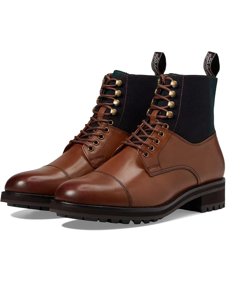 - Create your new favorite look with the help of the top-notch Polo Ralph Lauren® Bryson Boot. It features a calf leather or suede upper with a lace-up construction, cap toe, and rear pull tab.
