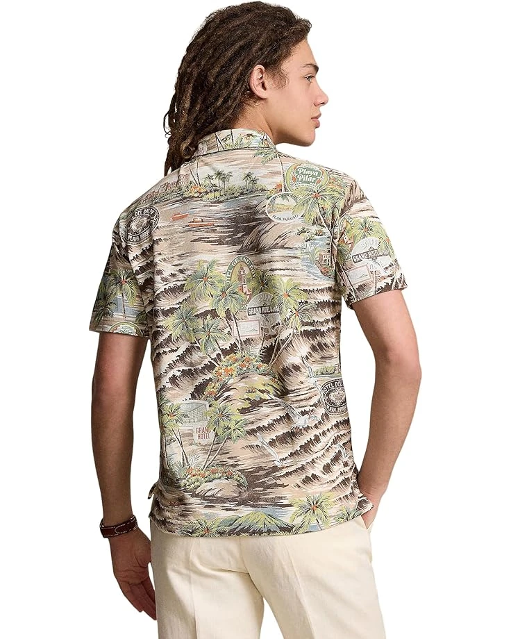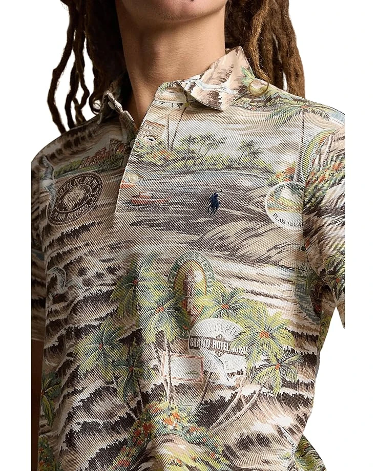 - Sun-drenched vibes meet timeless style! Elevate your sunny day’s wardrobe with Polo Ralph Lauren® Classic Fit Beach-Print Mesh Polo Shirt. Featuring a refreshing beach motif with ‘Hotel Del Ralph’ nostalgia, this polo offers a relaxed fit, polo collar, three-button placket, short sleeves, and an even vented hem for ultimate comfort and style.