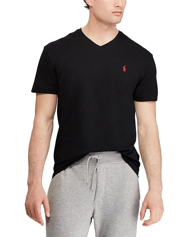 - This timeless Polo Ralph Lauren® Classic Fit V-Neck T-Shirt is an essential for any weekend wardrobe. This version is cut generously through the body and washed for added softness.