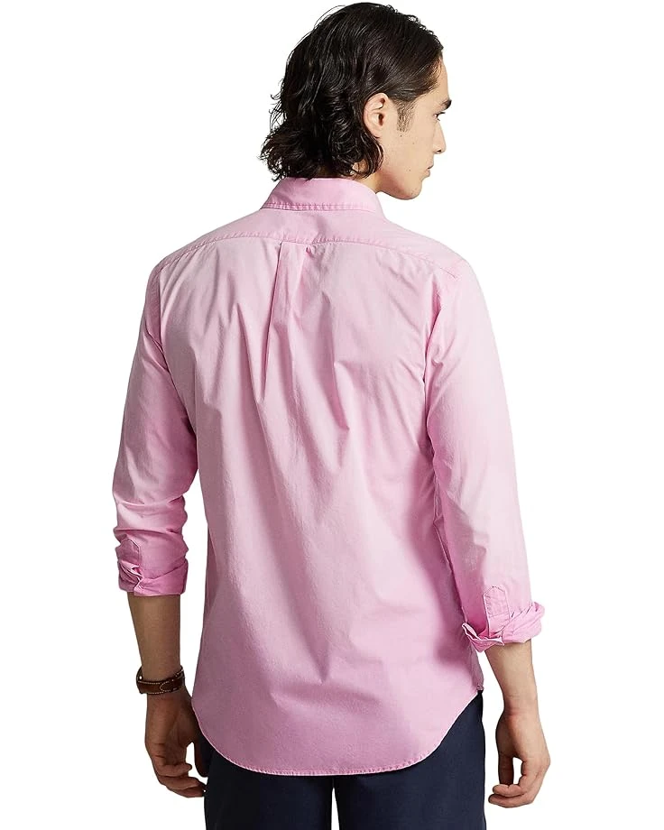 - Perfect for days when you wish to enjoy an extra dose of comfort, the Polo Ralph Lauren® Classic Fit Washed Poplin Shirt is constructed in a breathable and lightweight fabric with a button-down point collar, long sleeves with buttoned barrel cuffs, buttoned front closure, and a split back yoke with a box pleat for enhanced range of motion.