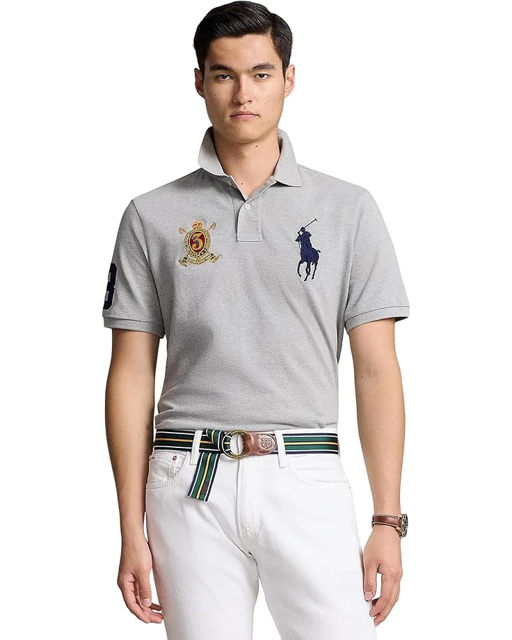 - Polo upgrade unlocked wearing Polo Ralph Lauren® Custom Slim Fit Big Pony Crest Mesh Polo. Experience timeless elegance since 1967 with iconic “3” appliquE, crossed mallets, and a crown embroidery. This polo boasts a ribbed collar, two-button placket, short sleeves, and vented hem for a tailored, comfortable fit. Pull it on effortlessly and showcase the signature Big Pony emblem, defining sophistication in every stitch.