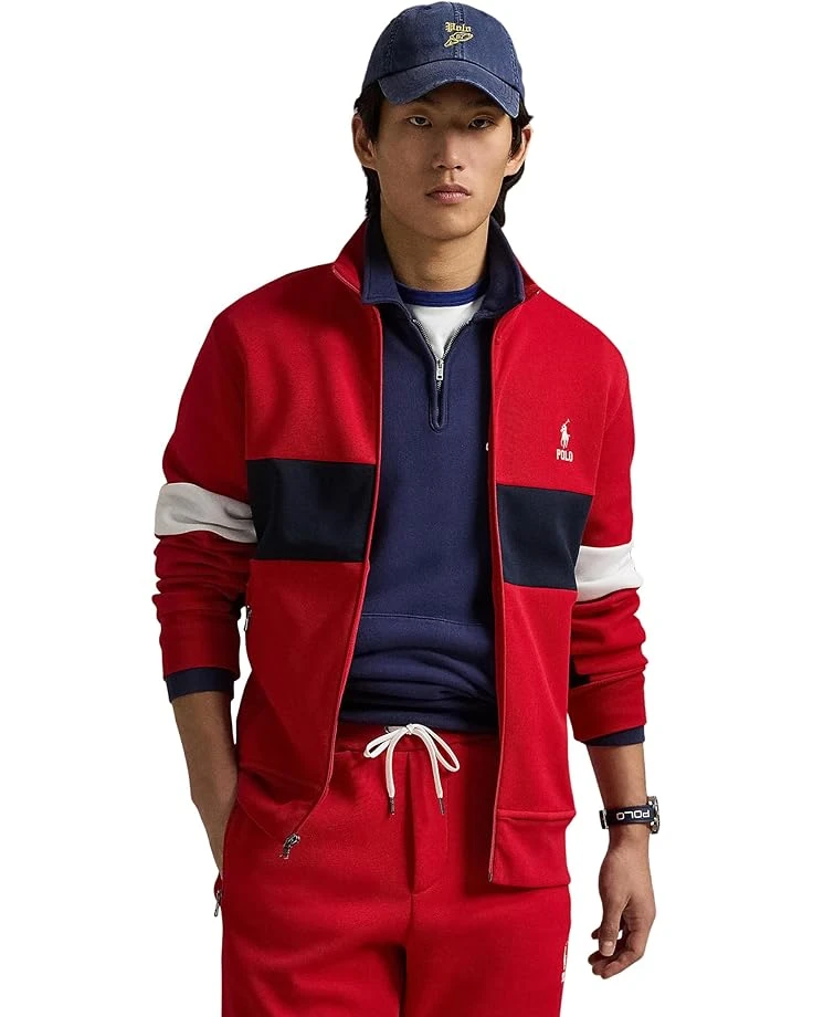 - For a cool and casual look, wear the super simple yet stylish Polo Ralph Lauren® Double-Knit Track Jacket.