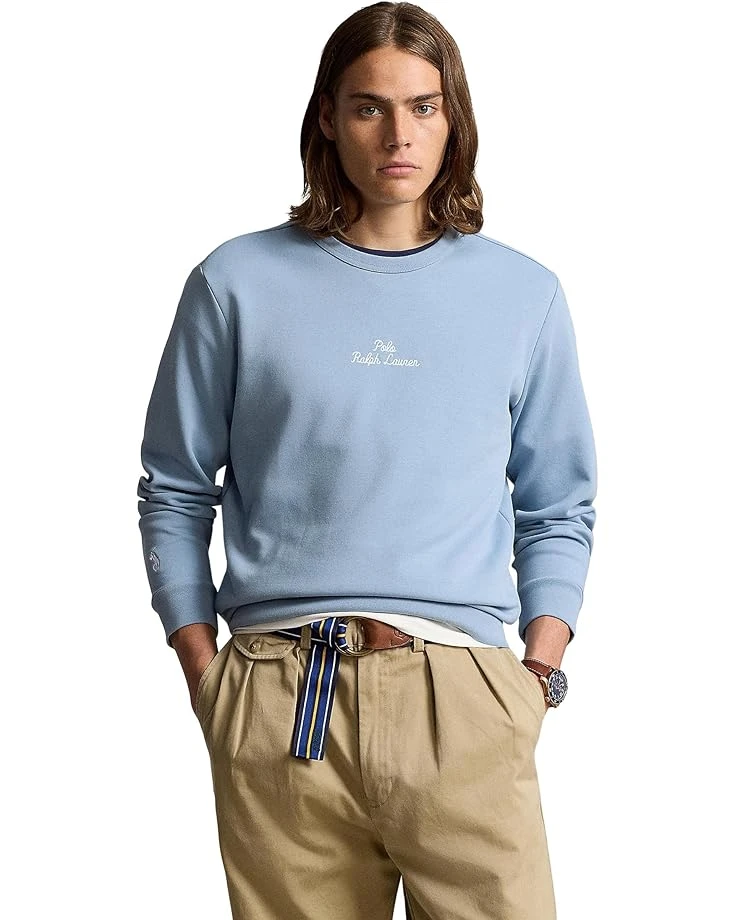 - Enjoy a classic look and a cozy feel all day long wearing the Polo Ralph Lauren® Embroidered-Logo Double-Knit Sweatshirt. Designed for a classic fit with a pullover style, this cotton-blend sweatshirt features a crew neck, long sleeves with ribbed cuffs, and a chain-stitched logo embroidery at the center front.
