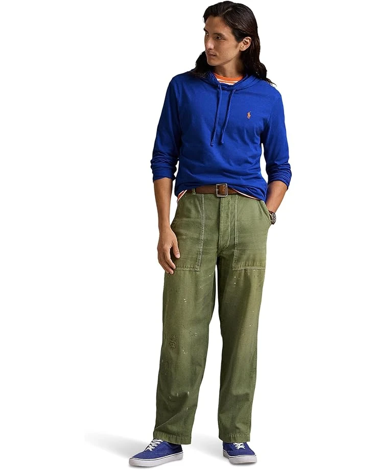 - The Polo Ralph Lauren® Jersey Hooded T-Shirt is constructed of cotton and features a drawstring hood on a long sleeved tee for a soft and comfortable shirt.