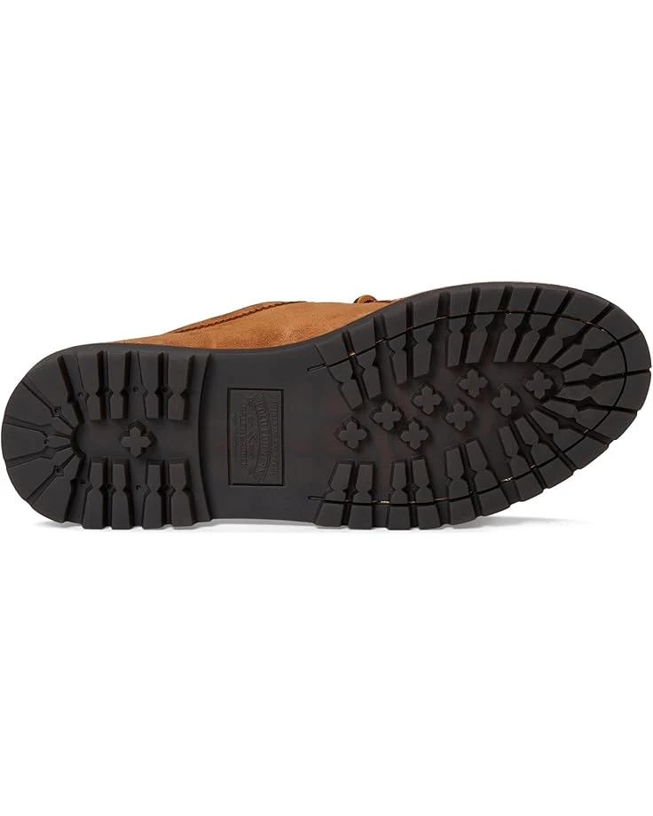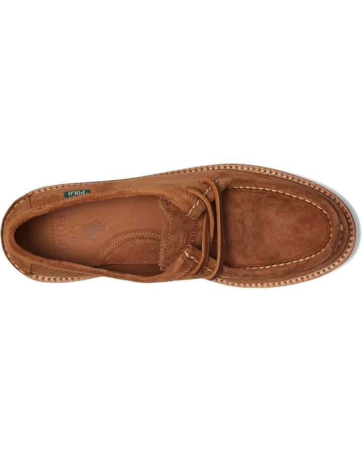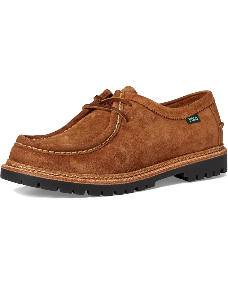 - A chunky rubber lug outsole and rawhide leather laces lend rugged style to the classic moc-toe silhouette of the Polo Ralph Lauren® Jett Apron shoes. The oiled leather upper is finished with pinking at the collar and hand-stitching at the heel and toe. These lace-up shoes are made of a leather insole and lining for all-day comfort. Featuring double-stitched leather welt, these leather shoes make a great addition to your footwear collection.