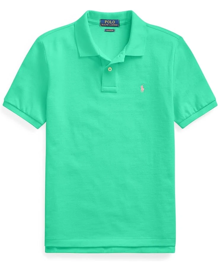 - The versatile Polo Ralph Lauren® Kids Basic Mesh Polo is essential to his classic style. The regular fitting polo shirt features lightweight, breathable cotton mesh fabric, short sleeve construction, and foldover polo collar with a two-button placket. An embroidered pony on the chest and a tennis tail hemline complete the look.