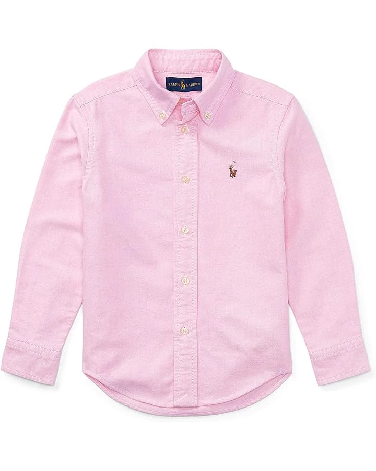 - Timelessly tailored with a button-down collar, and box-pleated back yoke, the Polo Ralph Lauren® Kids Cotton Oxford Sport Shirt is a comfortable classic you can dress up or down. This lightweight top features long sleeves with button-barrel cuffs, front button placket, and a multicolored signature embroidered pony at the left chest.