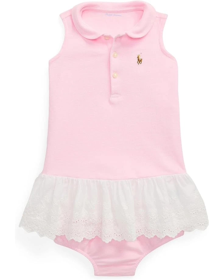 - Let your little one stand out in this adorable Polo Ralph Lauren® Kids Eyelet-Skirt Knit Oxford Dress & Bloomer. Made with breathable cotton mesh fabric, the dress features a drop-waist silhouette, an eyelet-embroidered skirt, and an iconic multicolored signature detail.