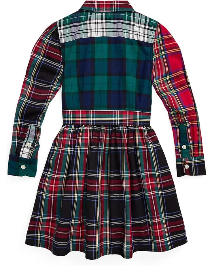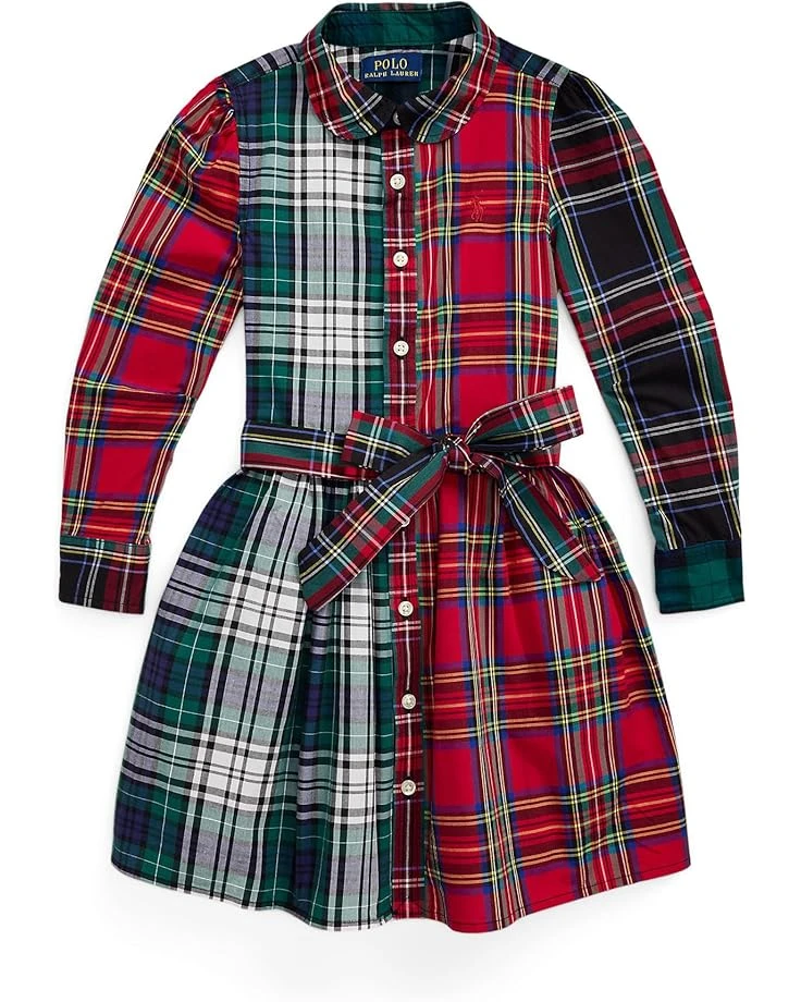 - Cut in a fit-and-flare silhouette, the Polo Ralph Lauren® Kids Plaid Cotton Fun Shirtdress is a perfect choice for different occasions. The buttoned front closure offers easy wear while the shirred waist adds to its appeal. This plaid dress is styled with darts at the back waist and comes with a self-sash. Designed with long sleeves, a collared neckline, and a straight hem, this patterned dress makes a great addition to your kid’s wardrobe.