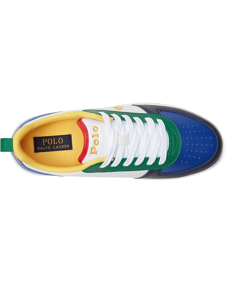 - Enliven their playful casual look while ensuring that they take every stride with comfort, support, and flexibility by choosing the Polo Ralph Lauren® Kids Polo Court II Sneakers. Featuring an eye-catching mix of bright and bold colors on the durable PU upper, these wear-anywhere shoes come with a breathable polyester lining and a padded polyester mesh insole for all-day comfort. With the embroidered iconic logo on the side and the embroidered brand name on the tongue, the footwear looks classy and iconic.