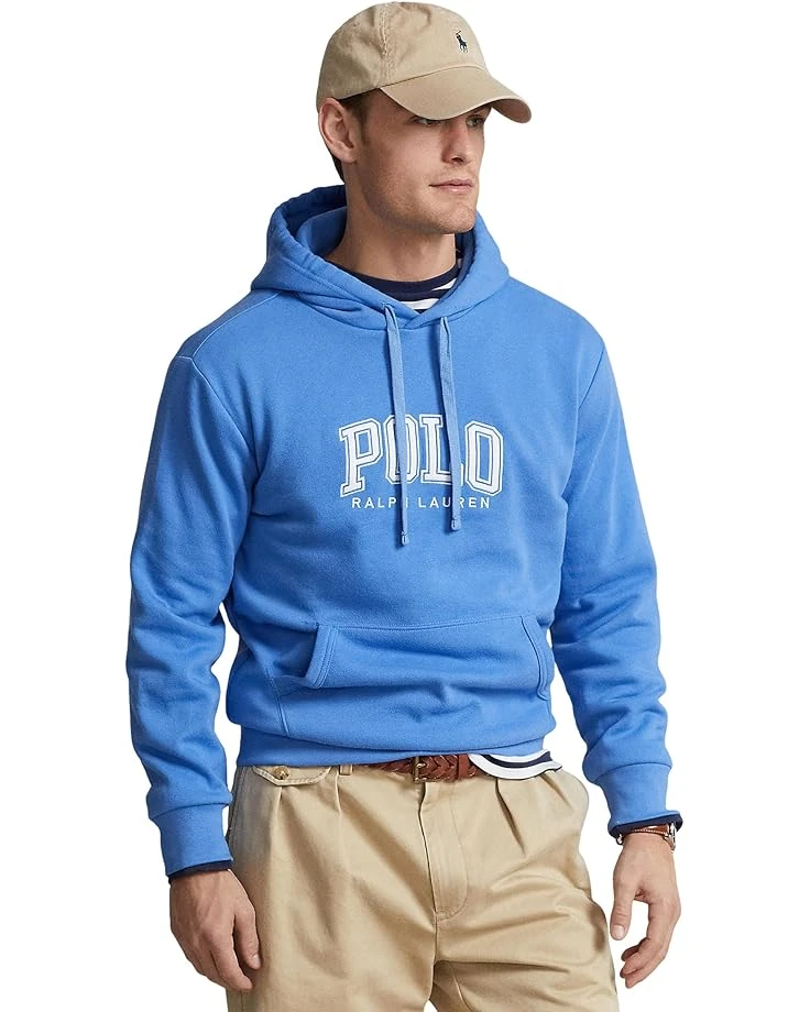 - Kick back in the classic look of the Polo Ralph Lauren® Logo Fleece Hoodie. This style offers a large block graphic of brand wordmark on the front, and the signature look of an all-white sweatshirt.