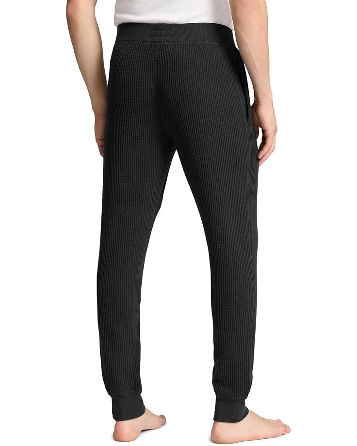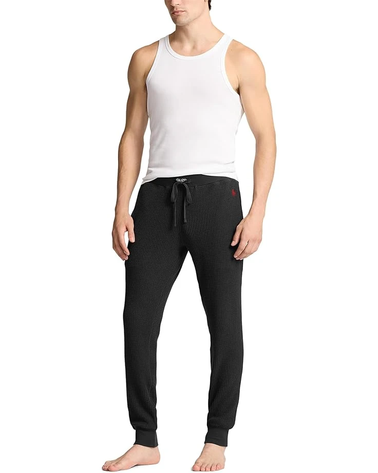 - Slay the comfy classic style with modern flair wearing Polo Ralph Lauren® Thermal Pajama Joggers. This textured knit bottomwear features an elasticized waistband with adjustable drawstring closure and cuffed hem.