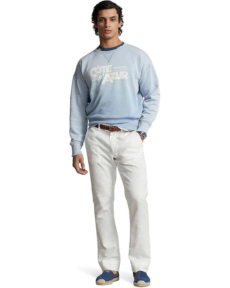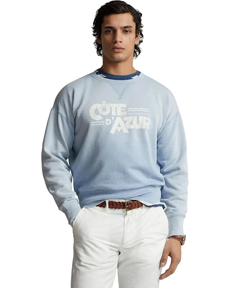 - Stay cozy and stylish in the Polo Ralph Lauren® Vintage Fit Fleece Graphic Sweatshirt. Featuring a classic crew neckline and long sleeves with ribbed cuffs, this sweatshirt boasts a nostalgic vibe with its “Côte d’Azur,” waves, and “Polo Ralph Lauren” print at the center front. Inspired by an authentic vintage proportion, it has a wider dropped shoulder. Complete with a ribbed hem, this sweatshirt effortlessly combines comfort and retro flair.